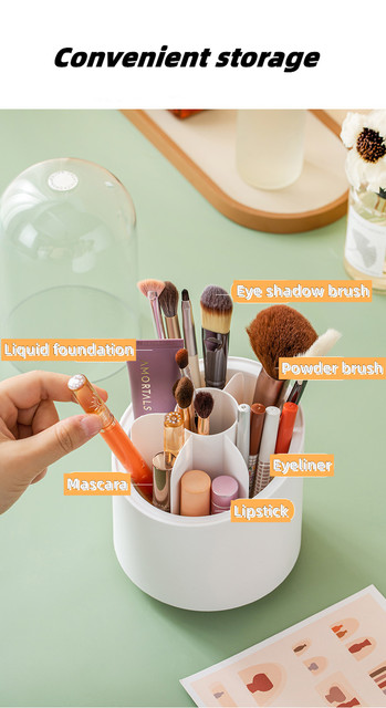 360° rotary cosmetic brush storage box portable desktop cosmetic organizer lipstick eyebrow pen eye shadow brush holder