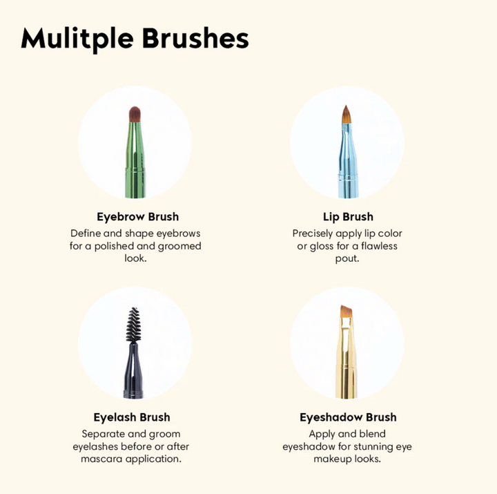 The 4 in 1 Stackable Eye Brush Set is a space-saving, multi-functional beauty tool designed to simplify your makeup routine.