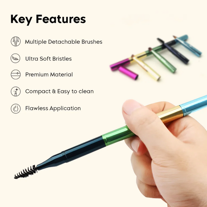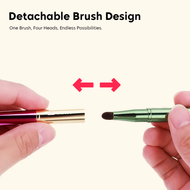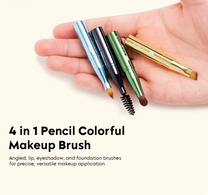 Styled like a chunky pencil, it features four detachable brush heads inside one sleek tube — perfect for applying eyeshadow, blending, concealer, or lip color. Compact, colorful, and ultra-convenient, it’s ideal for both travel and daily use.