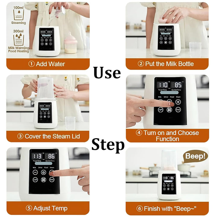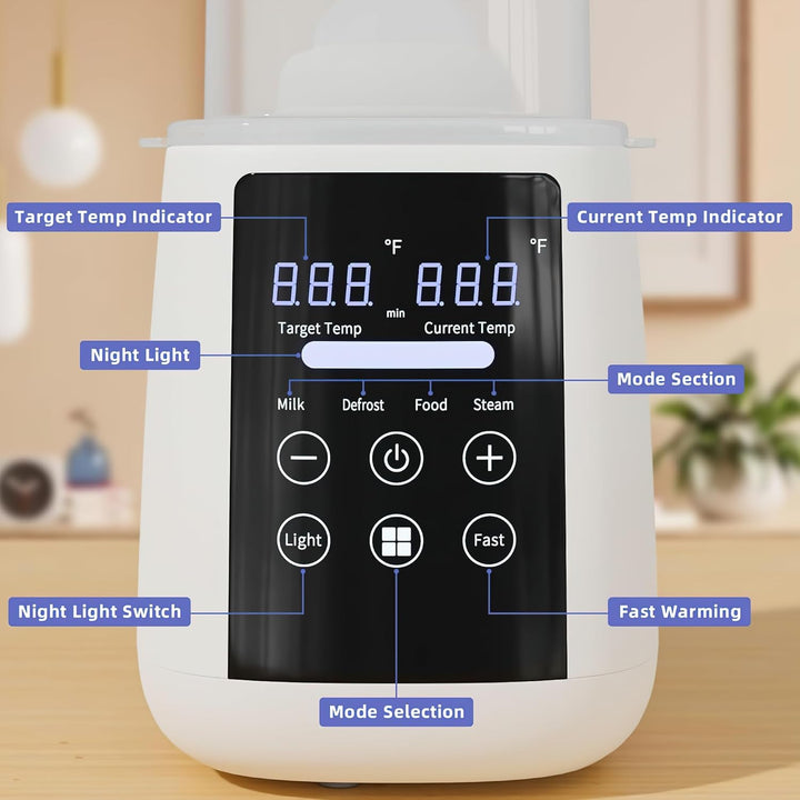 Simplify feeding time with this multi-functional baby bottle warmer. Designed to gently warm milk, heat baby food, defrost frozen milk, and sterilize—this smart warmer features an intuitive LCD display and precise temperature control to suit every feeding need.