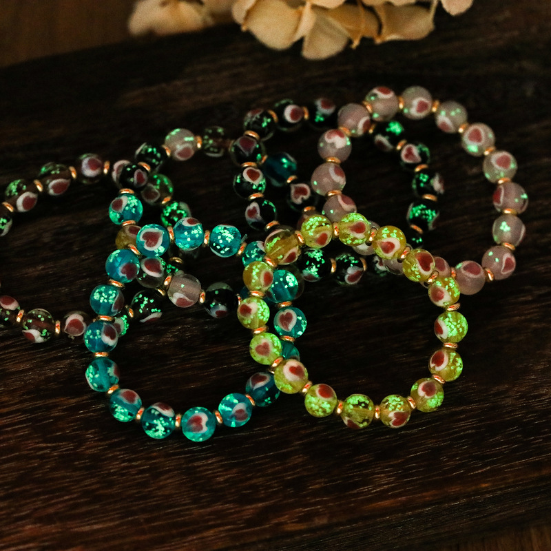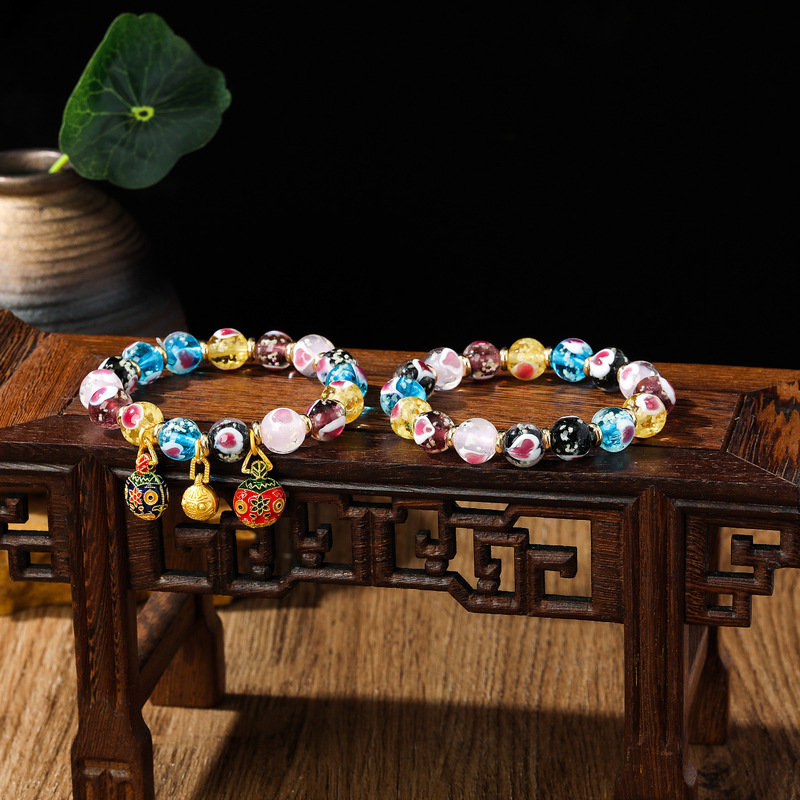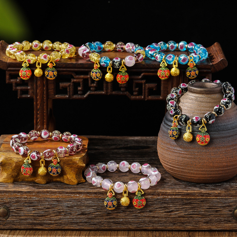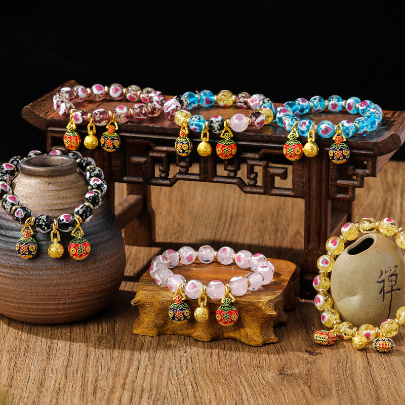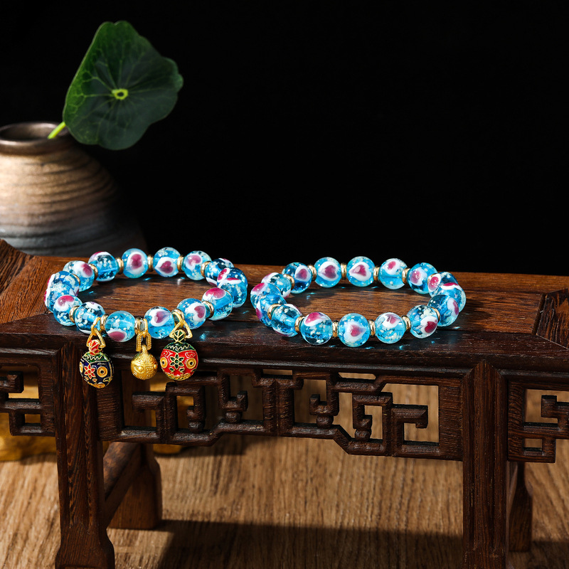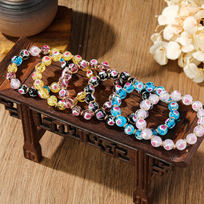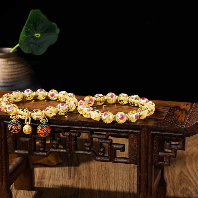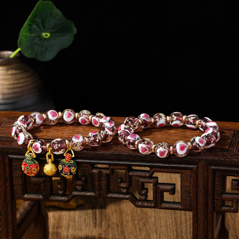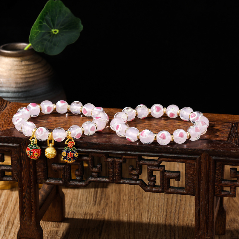 Ancient Fluorescent Glaze Swallowing Gold Beast Cherry Blossom Powder Heart Bracelet