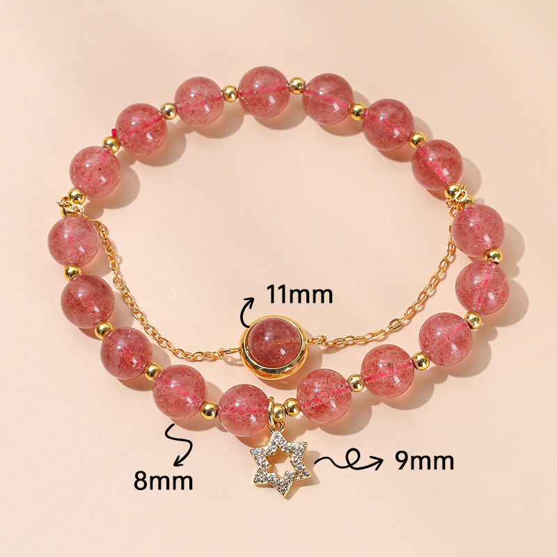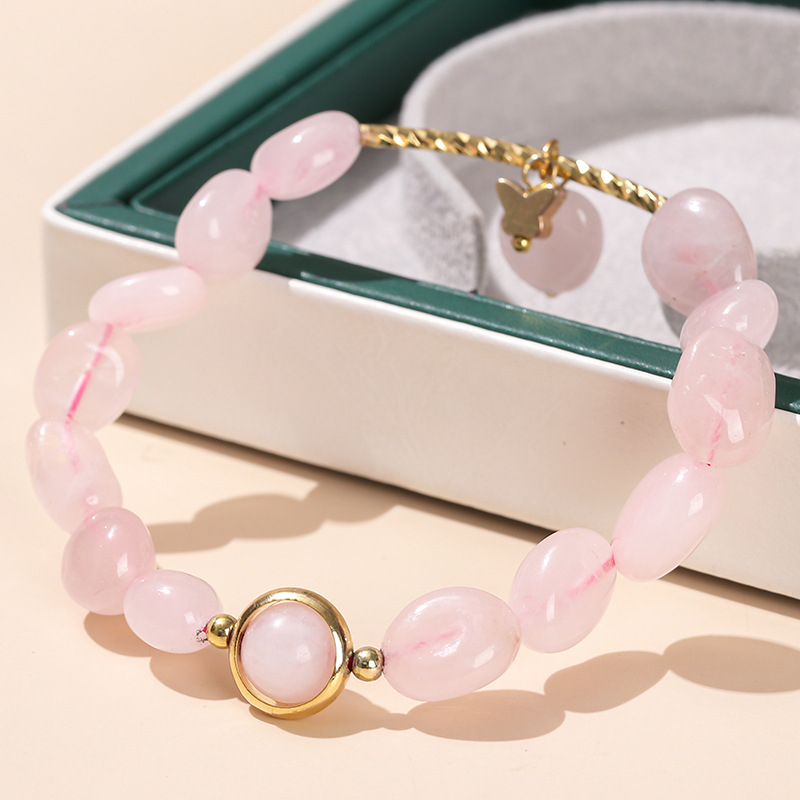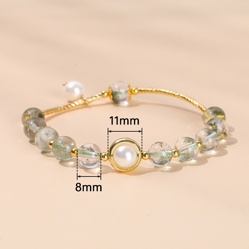 Color: natural pink crystal with shape transfer beads bracelet, 5A natural garnet transfer beads bracelet, natural green Phantom quartz Pearl transfer beads bracelet, 3A natural strawberry quartz transfer beads bracelet