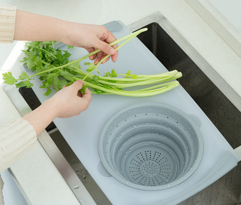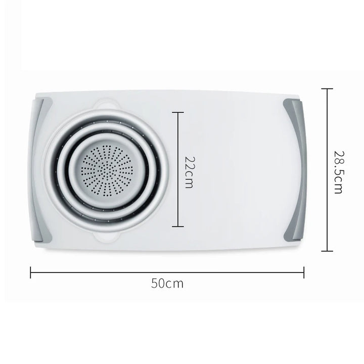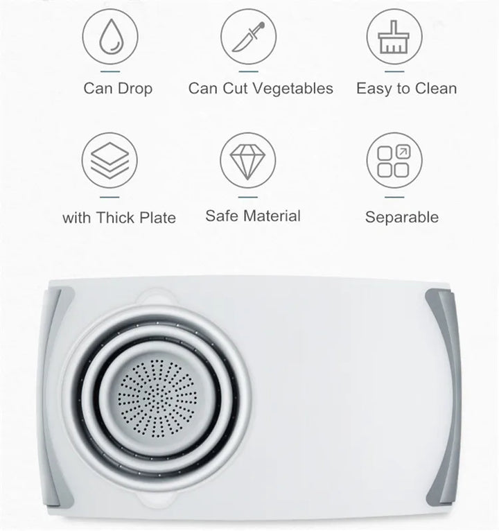 The board is made from durable, food-grade materials that are safe for daily use and easy to clean. Its collapsible design makes storage effortless, while non-slip edges ensure stability during use. Perfect for fruits, vegetables, pasta, and more, this multi-functional tool is a must-have for modern kitchens.