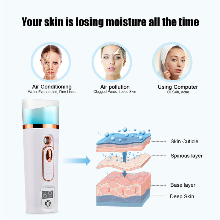 1.This nano-spray hydrating instrument can moisturize, replenish, soothe the skin and reduce the secretion of oil, giving your facial skin a comfortable facial spa.