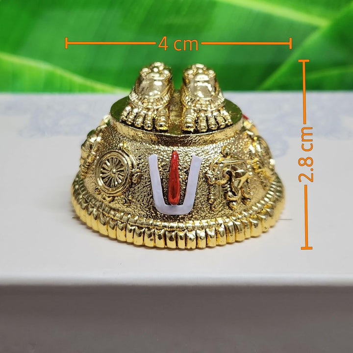 Gold Plated Antique Finish Lord Balaji Charan Paduka Vishnu Charan Paduka for Pooja Room/Car Dashboard Venkateswara Swamy Feet with Shanku & Chakra Namam Gifting (Gold)