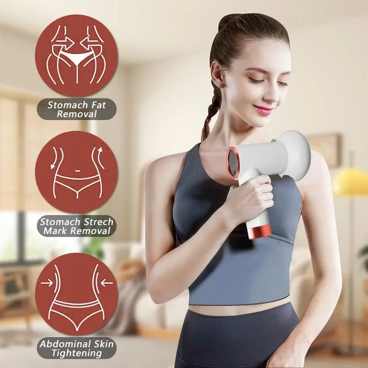 This device uses high-frequency mechanical vibration to penetrate deep into the subcutaneous layer of your skin. The rapid oscillations disrupt fat cell clusters, increase circulation, and stimulate metabolism in targeted areas — helping your body naturally eliminate fat through the lymphatic system.