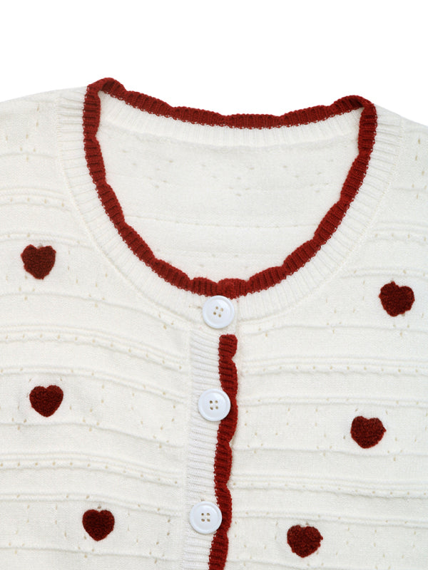 Heart Jacquard Sweater Contrast Color Cardigan Knitted Jacket