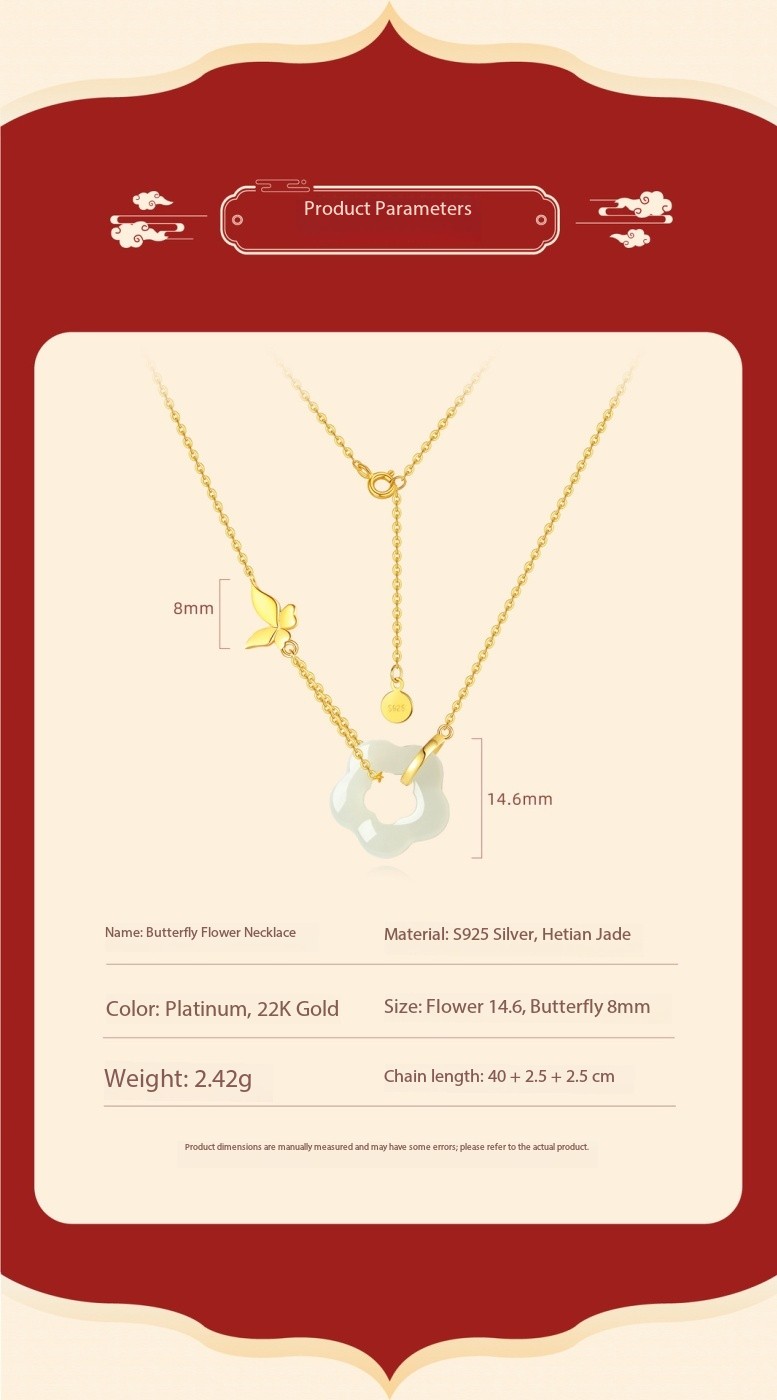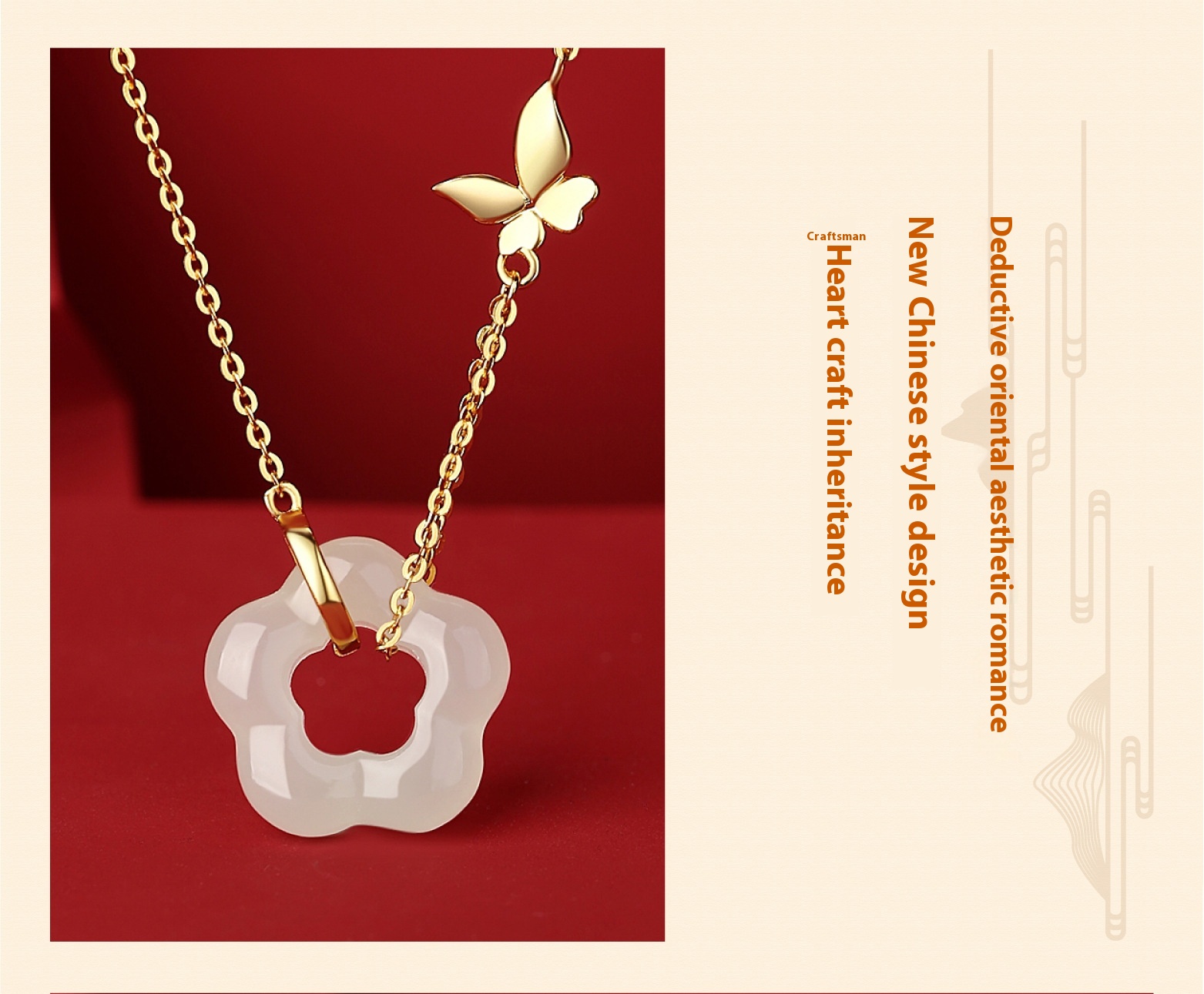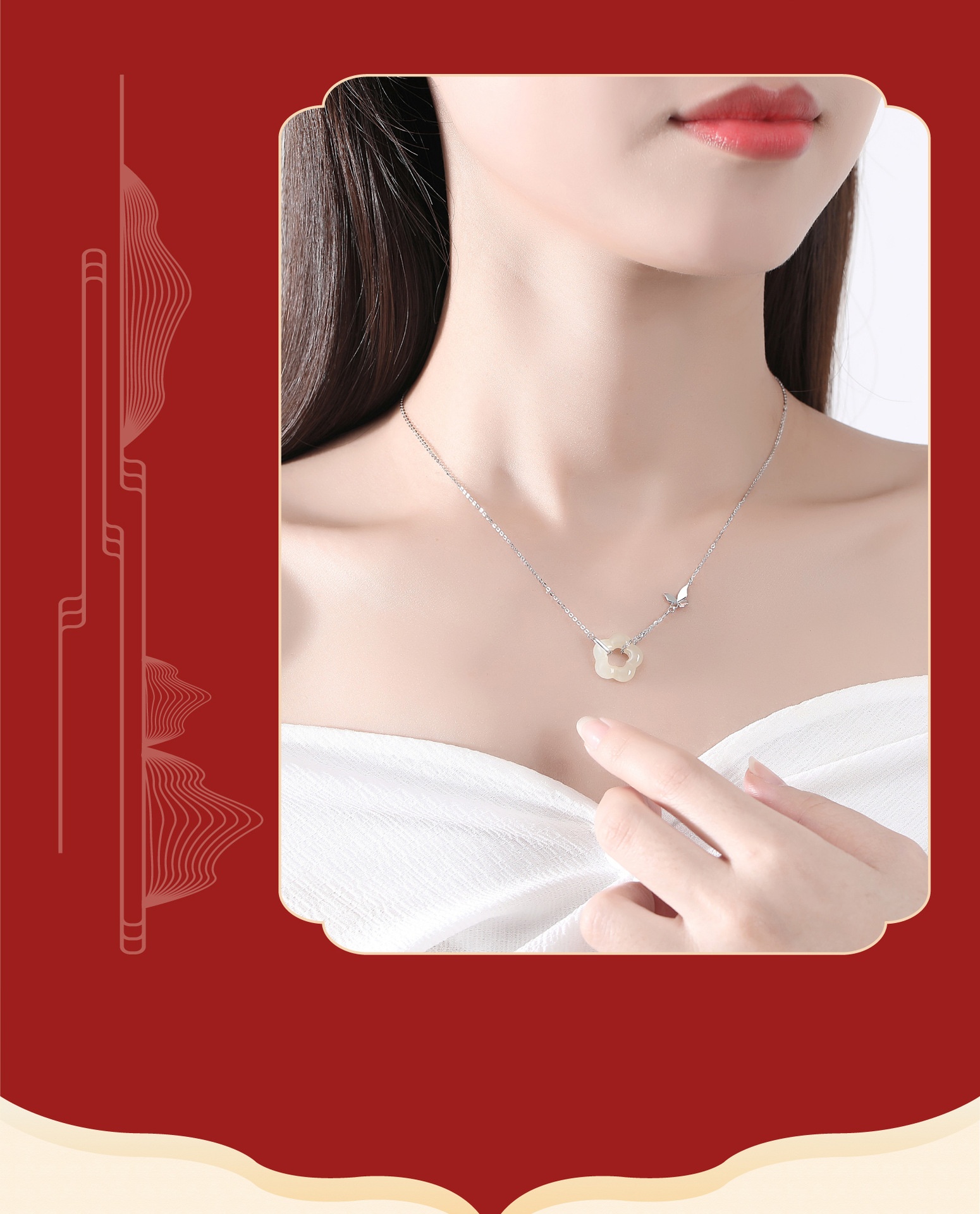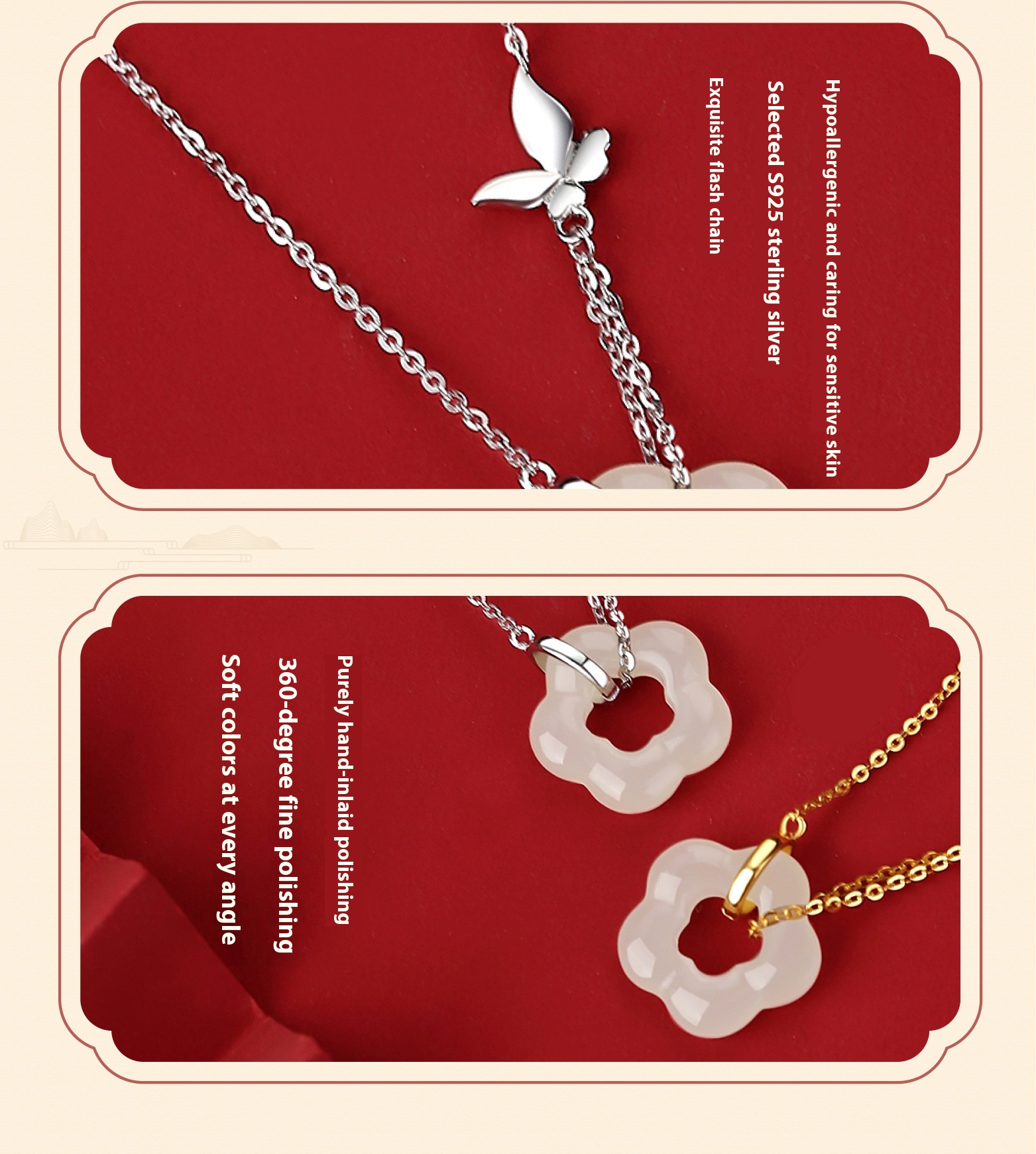 Hetian Jade Necklace Women's Sterling Silver National Style High Sense