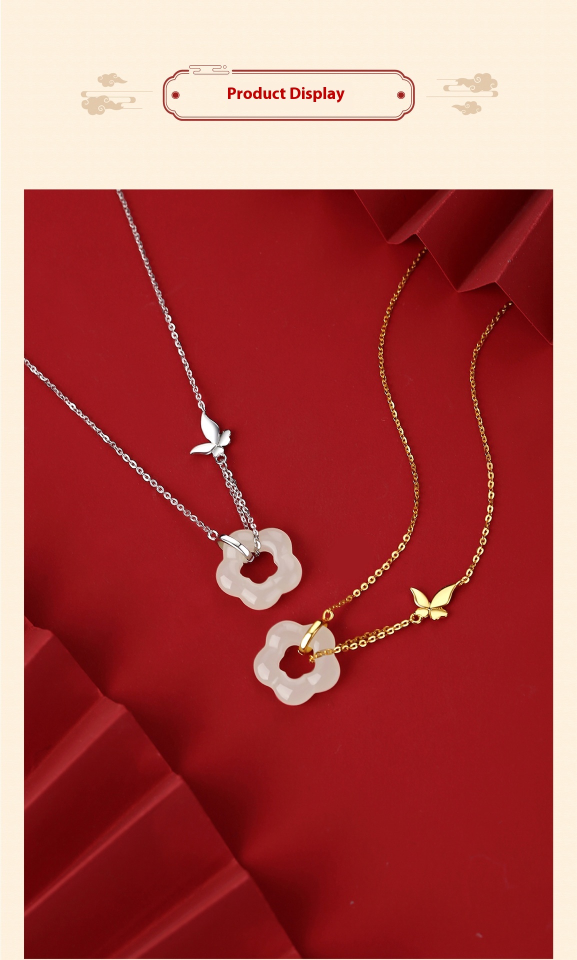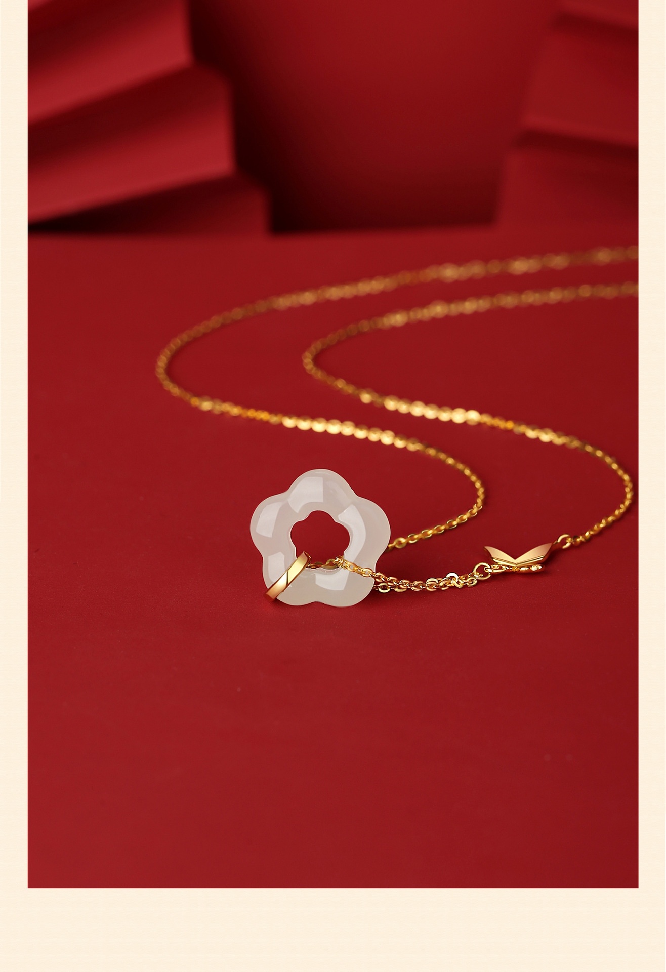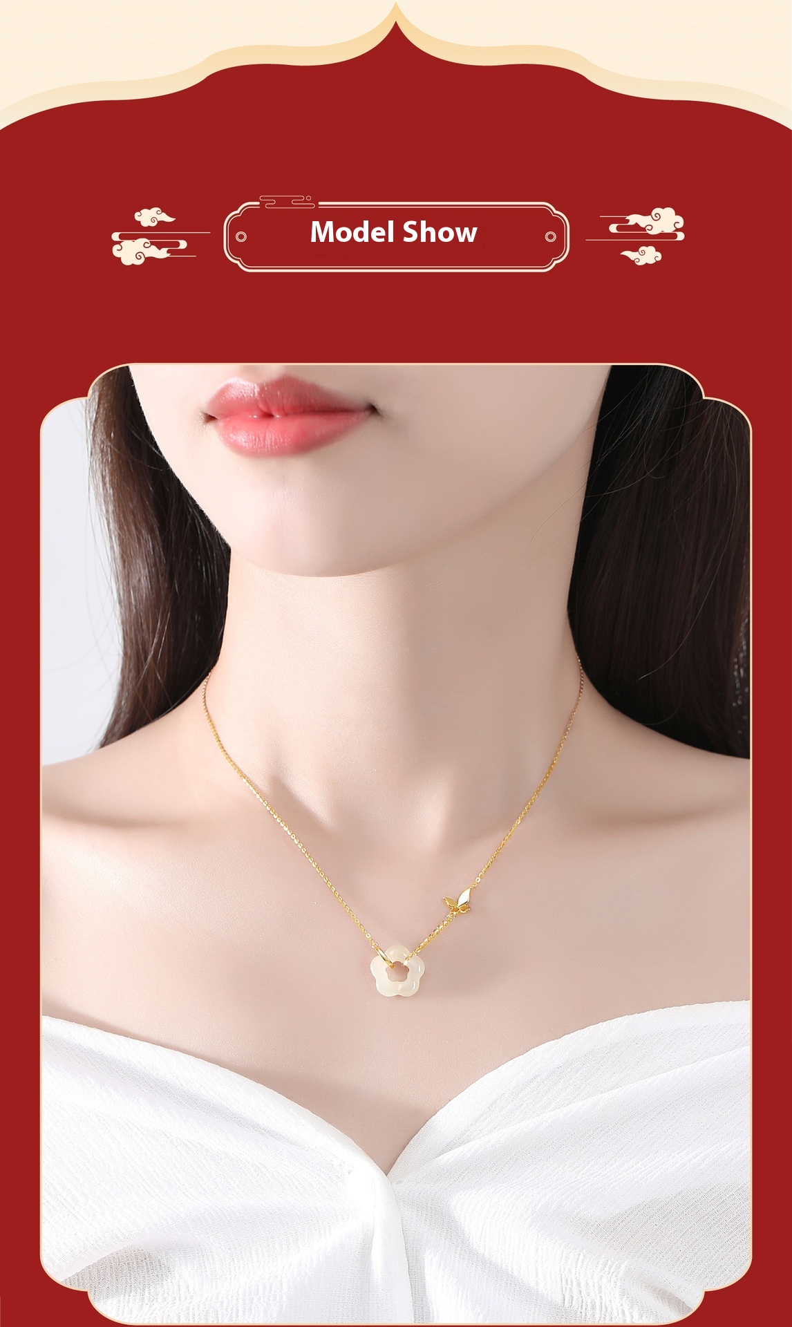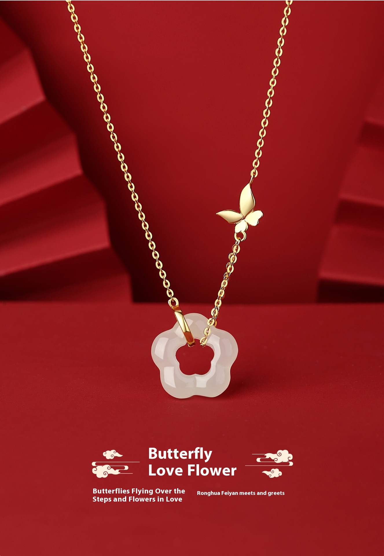 Hetian Jade Necklace Women's Sterling Silver National Style High Sense