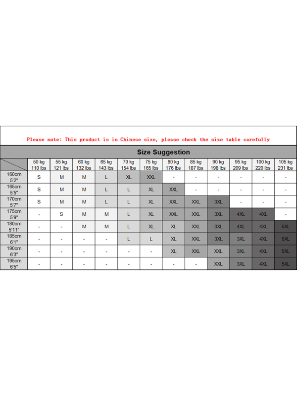 S, M, L, XL, XXL, 3XL, 4XL, 5XL |