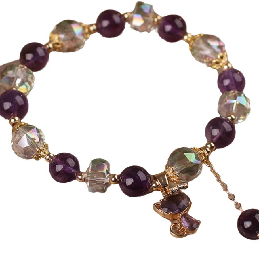 Color: Natural amethyst Fox pendant bracelet, natural purple crystal five-leaf flower pendant lucky bracelet