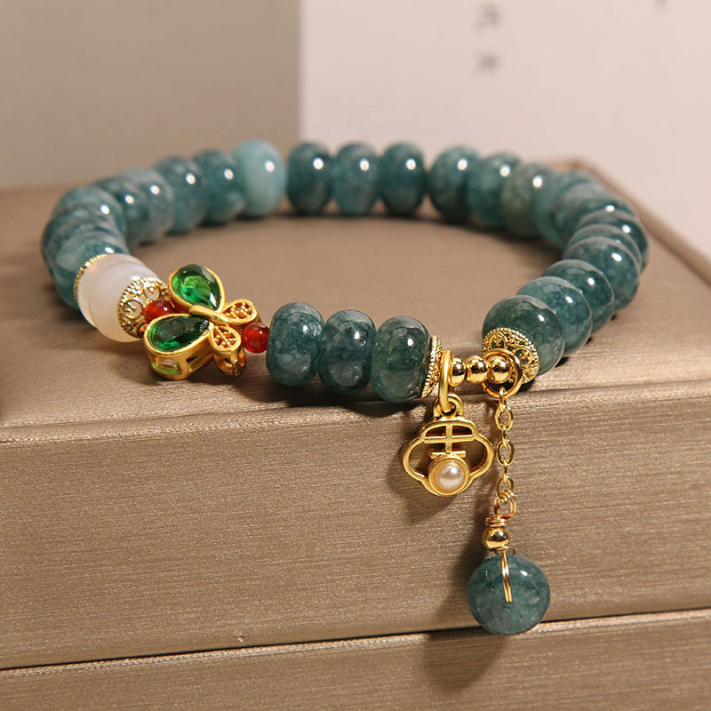 Natural Blue Water Jade Abacus Beads Crystal Bracelet