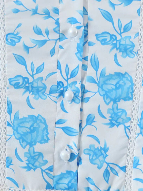 New European and American fashion temperament small fresh V-neck layered floral skirt