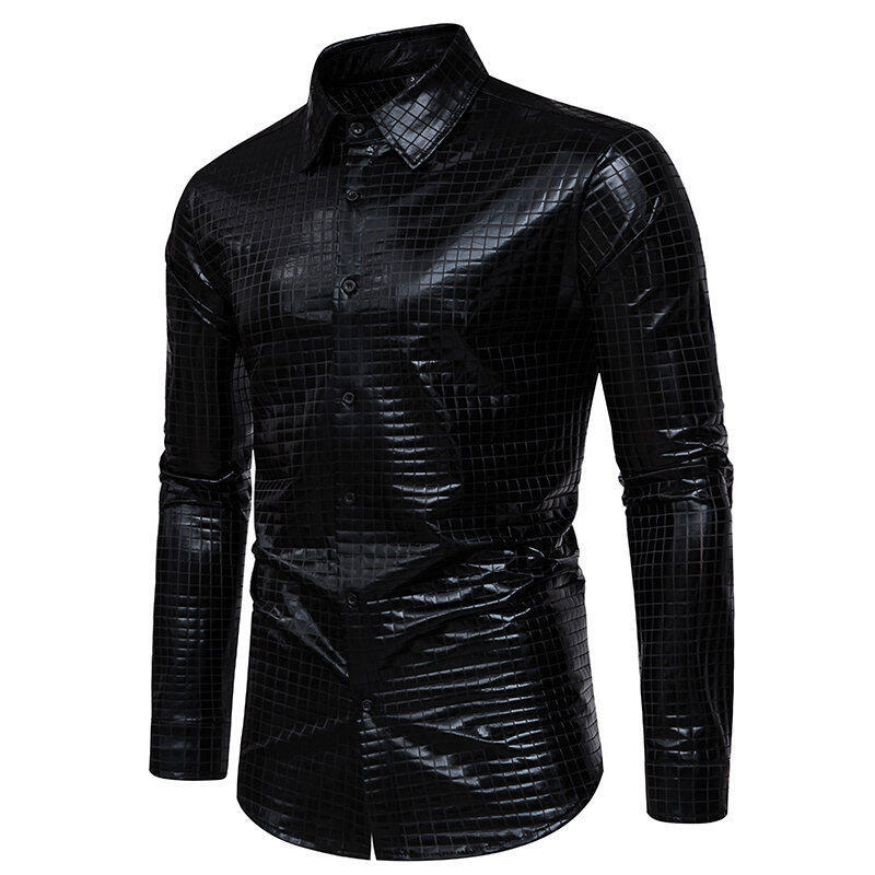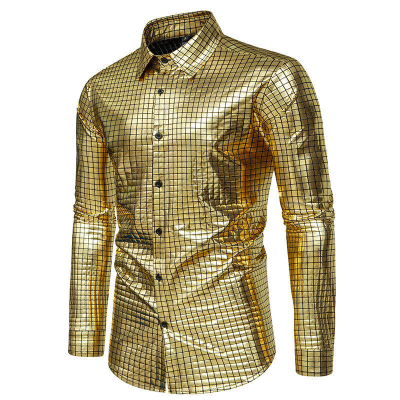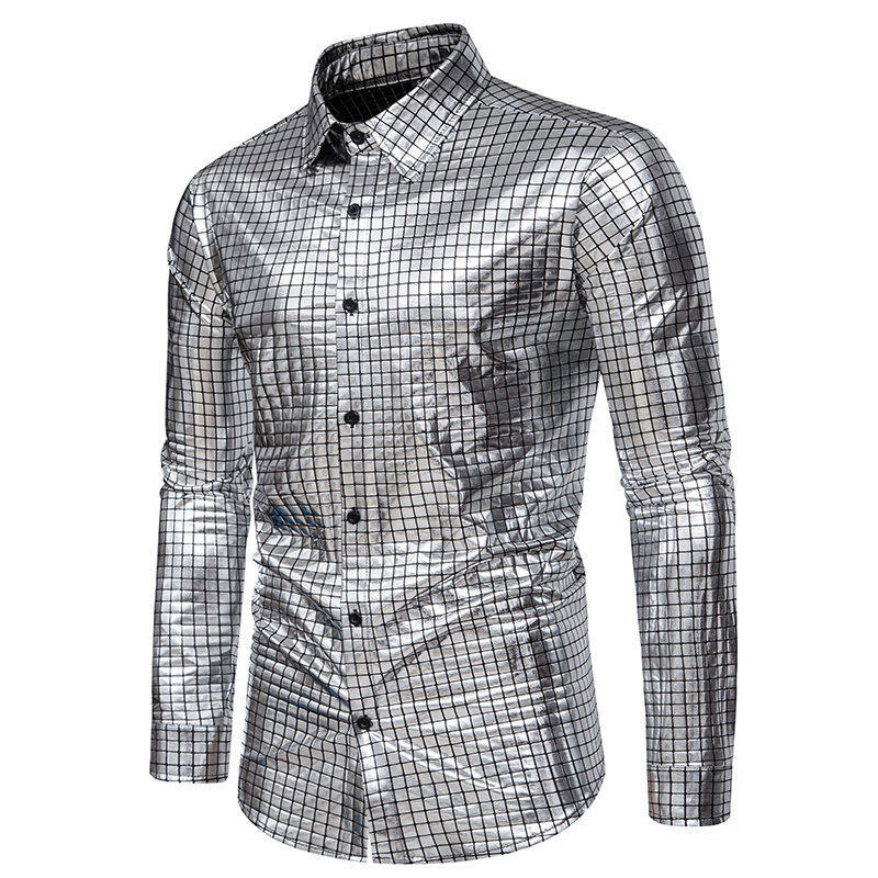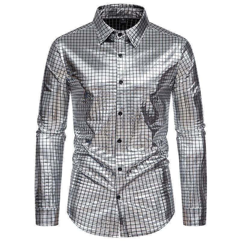 Plaid Bronzing Printed Stage Costume European Size Men's Long-sleeved Shirt