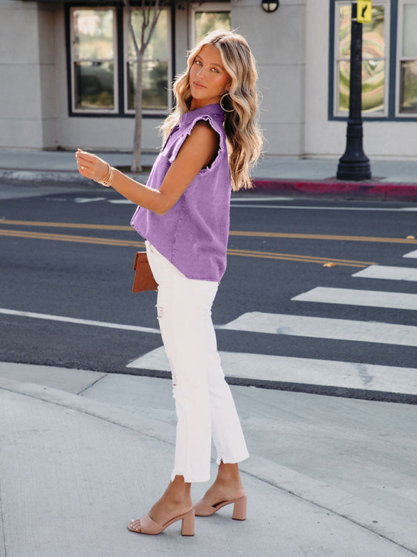 Raw edge ripped denim jacket Temperament casual trendy jacket