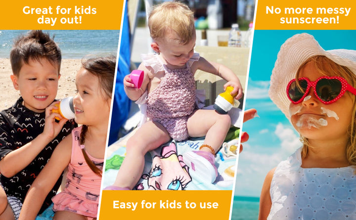 Easy for Kids To Use - no more messy sunscreen hands! Simply fill container with sunscreen of choice, shake the contents towards the roller ball and apply to body. The sponge ring will assist with rubbing in the lotion. Plus no more waste from squeezing too much sunscreen on your hands.