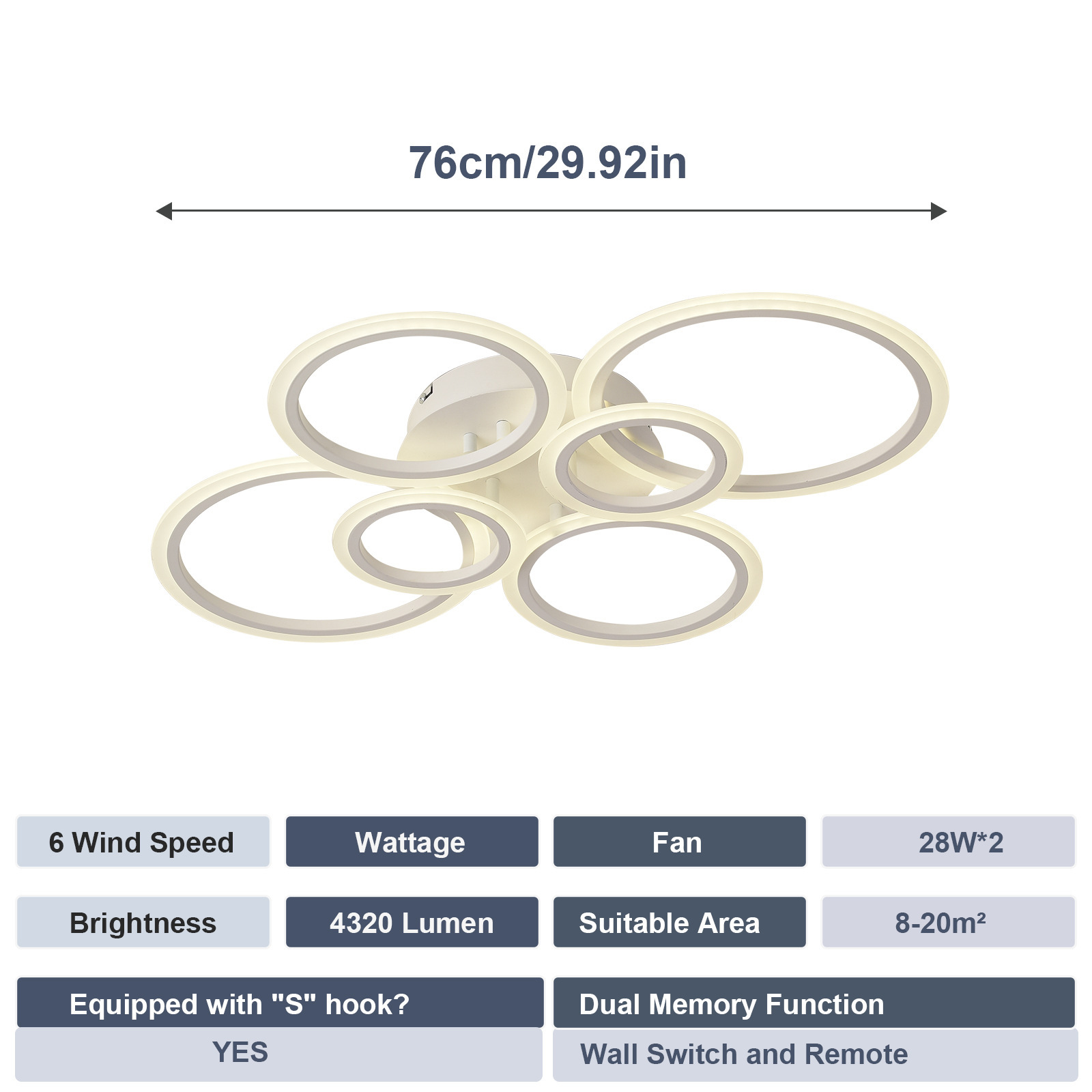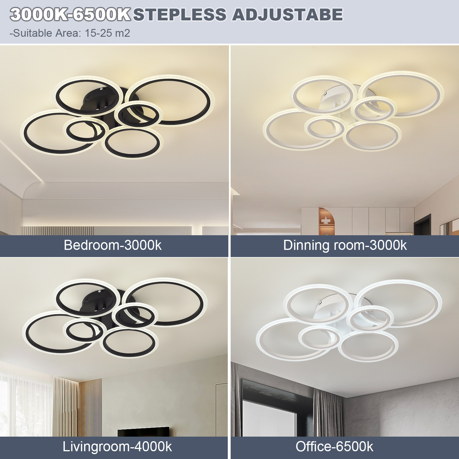 Light source power: Six circles in the bedroom - white; Diameter: 76CM; Tricolor changing light - cold light - warm light - neutral light; Wall control, bedroom six circles - black; Diameter: 76CM; Tricolor changing light - cold light - warm light - neutral light; Wall control (W