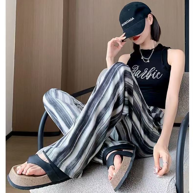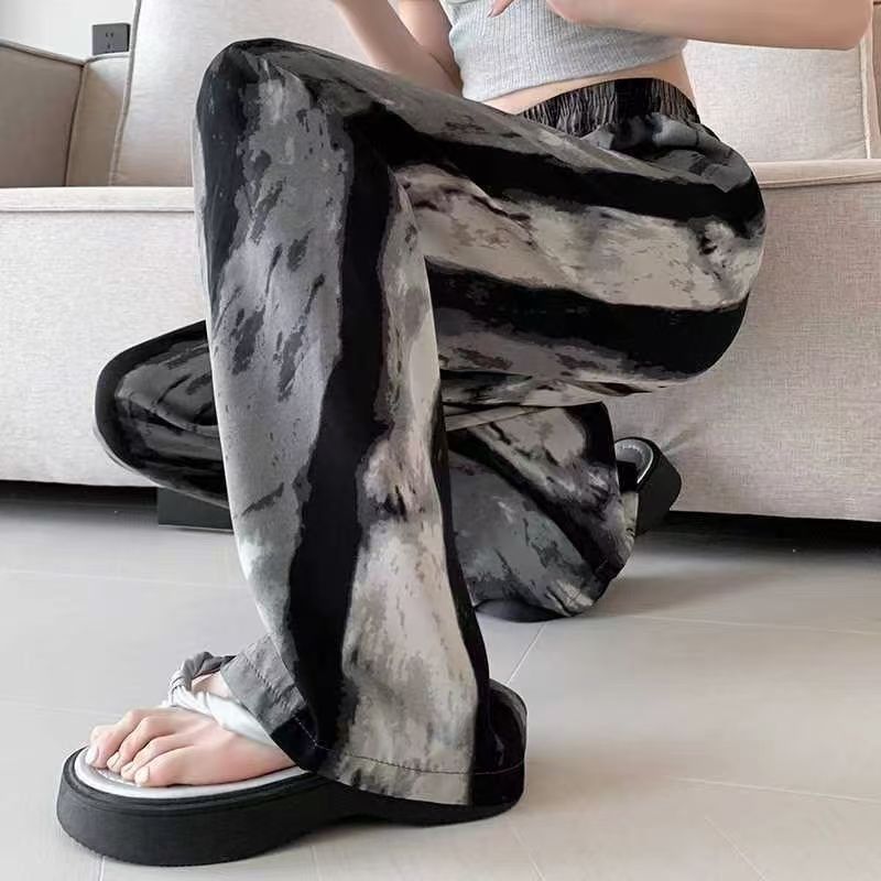 Tie-dyed Ink Painting Elastic High Waist Loose Casual Pants
