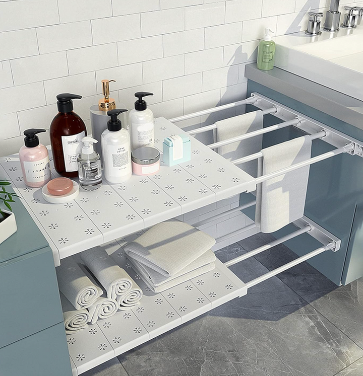 • Versatile Fit: Adjusts to cabinet or shelf width with ease