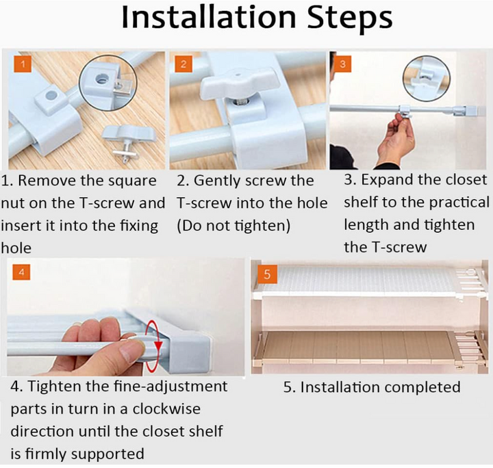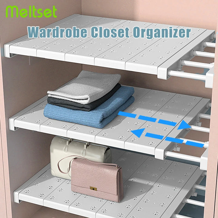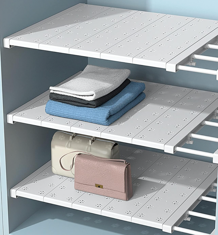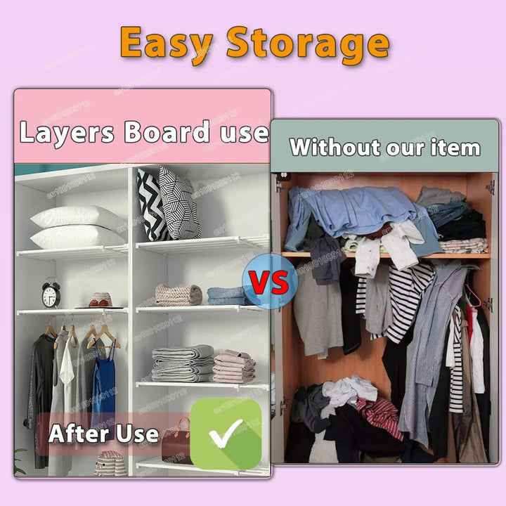 Maximize storage with this Adjustable Wall-Mounted Wardrobe Storage Rack—a versatile, space-saving bracket perfect for wardrobes and kitchen cabinets. Crafted from high-grade metal, its telescopic design adapts to various widths for a snug, customizable fit. Whether for clothes, accessories, or pantry essentials, it mounts easily and keeps items neatly organized.